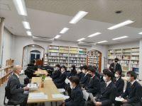 2月10日(金)放課後、学びの杜カレードの小澤館長を講師にお迎えして、図書館にてビブリオバトル講習会が開催されました。カレードで去年の10月に開催された全国高校ビブリオバトル石川県大会には、図書委員も観戦に訪れ、県内の高校生の熱気に圧倒されました。今回の講習ではカレード館長にビブリオバトルの魅力をたっぷり語っていただきました。図書委員が参加し、熱心に話を聞いていました。ビブリオバトルとは、バトルすることが趣旨ではなく、自分のおすすめ本を他者に知ってもらい、また、他者のすすめた本をきっかけに、自分の読書の幅を広げることが目的であると知りました。新しくリニューアルした明るい雰囲気の図書館にて初めて行われたイベントに新聞部の生徒が取材に来てくれました。館長はぜひ石川県大会に明倫生もバトラーとして出場してほしいとおっしゃっていて、今後も関わっていただく予定です。