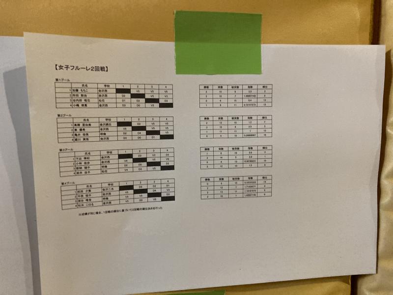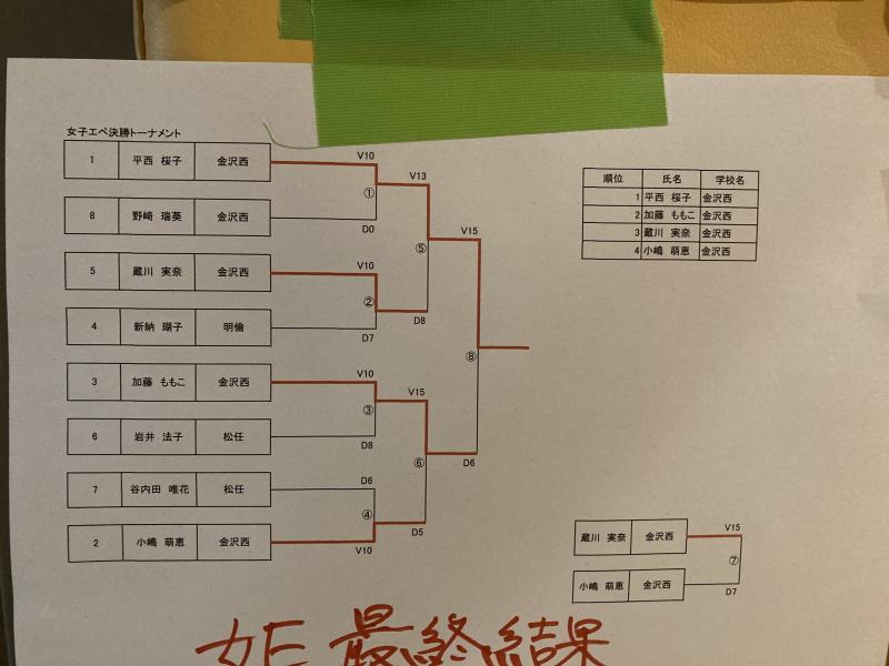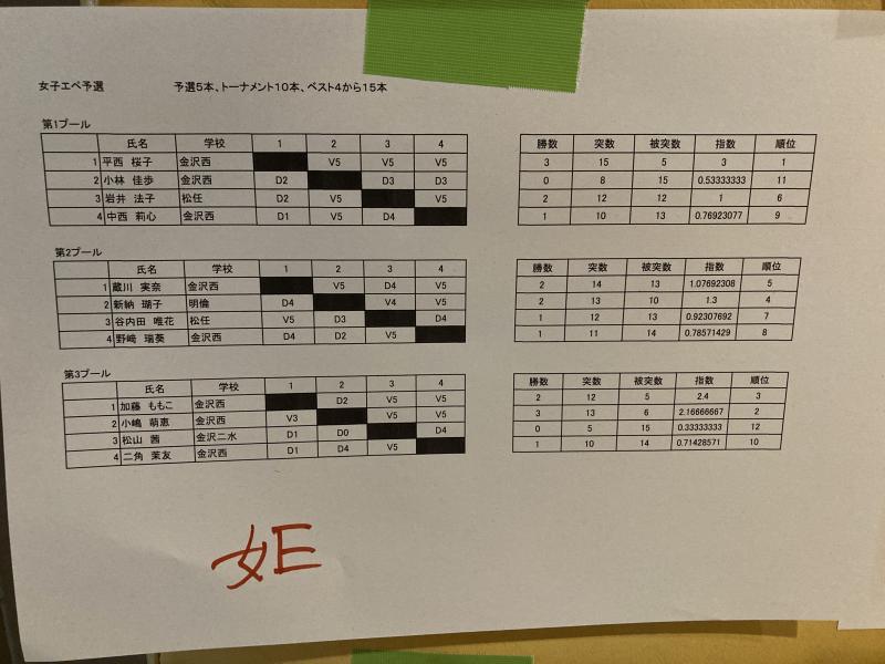県総体1日目(個人エペ・サーブル)結果