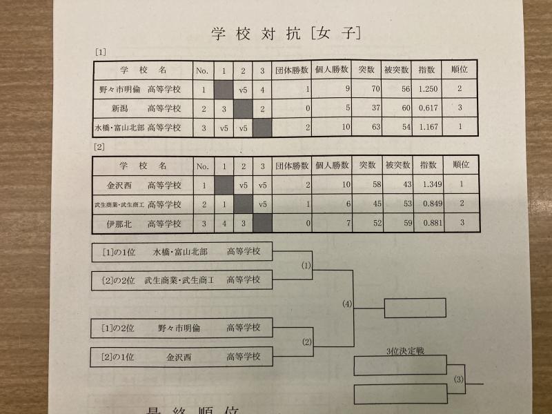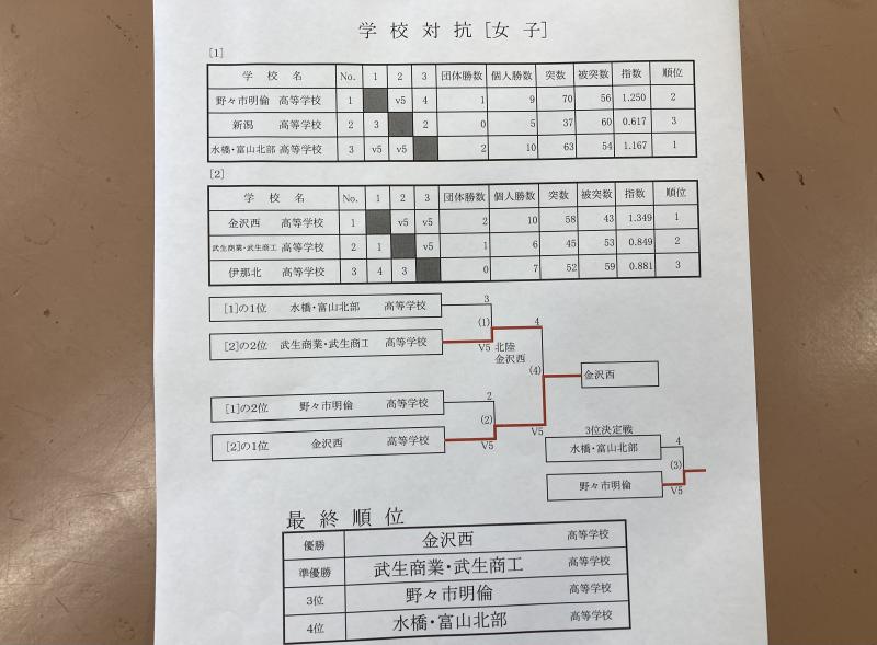 その結果2勝で、金沢二水・松任・野々市明倫が並ぶことに。北信越総体の切符は、指数計算(総勝数÷総負数)に委ねられました。