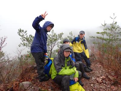 雨の中の登山でしたが、三童子山を経て鞍掛山へ近づくにつれ、雨が弱くなり、霧に覆われた周囲が徐々に晴れてくる様子は幻想的でした。本校山岳部にとっては登り慣れた山でしたが、雨の中で普段とは違った登山を経験することができました。