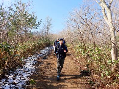 前日とは変わって良い天気に恵まれましたが、前日に降った霰が登山道の脇やスキー場の斜面に薄く積もっており、4月とは思えない景色を見ることができました。今回は年度最初の登山ということもあり、軽めの登山となりました。