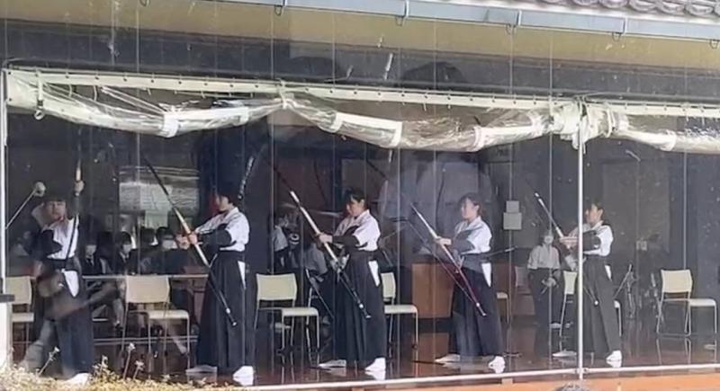 令和5年2月12日(日)県立武道館弓道場で行われた如月弓道大会において、女子団体が上位4位に入り決勝戦に進出しました。3位までの入賞がならず悔しい思いもありました。しかし、2年池田さんが4射皆中を2回連続でする活躍をみせてくれました。2年生だけでなく1年生もよく頑張った大会でした。