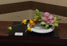 華道部は、将来ずっと活かせる趣味・特技のひとつを自分のものにできる、楽しい部活です。お花があれば、自分はもちろん、周りの人の気持ちもなごみます。先輩の作品はこの通り!