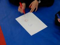 ペアでしゃべらず一筆書きずつ似顔絵を作成する活動(TWOドット)やグループ対抗ヒント取り合戦といったグループワークを行いました。