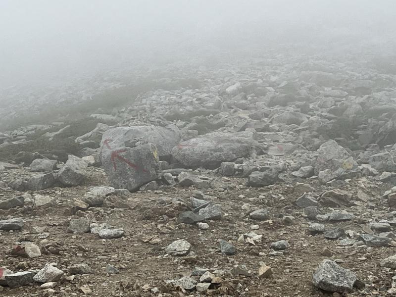山頂を目指して 霧の中をひたすら進む