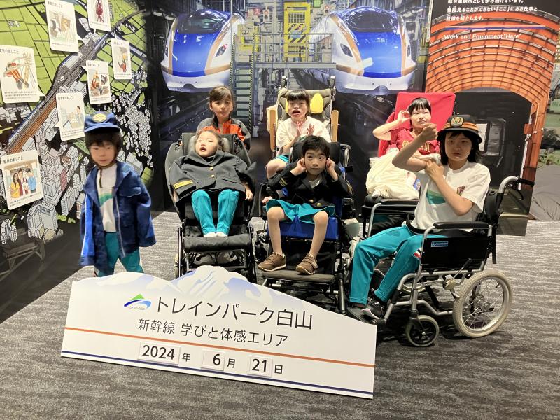 肢体小学部 校外学習 投稿日時 : 2024/07/10 小学部 カテゴリ:肢小学部 6月21日(金)にトレインパーク白山に行きました。学びと体験エリアと新幹線見学エリアで、新幹線について体感し、楽しみました。 全員で記念写真を撮りました。車掌さんや整備士さん等の衣装を身につけ、「ぱちり!」 グランクラスのシートに座ってみました。座り心地最高!! 車両基地では、油のにおいも感じられました。みんなじっくり見ていました。 新幹線がものすごいスピードで通り過ぎ、みんなびっくりしていました。
