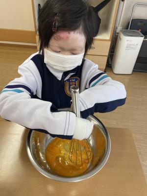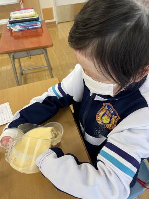 肢体高等部2年生では、家庭基礎の授業でプリン作りを行いました。