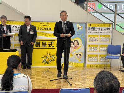 5月17日(土)イオンモール白山で、イオン幸せの黄色いレシートキャンペーンギフトカード贈呈式が行われました。