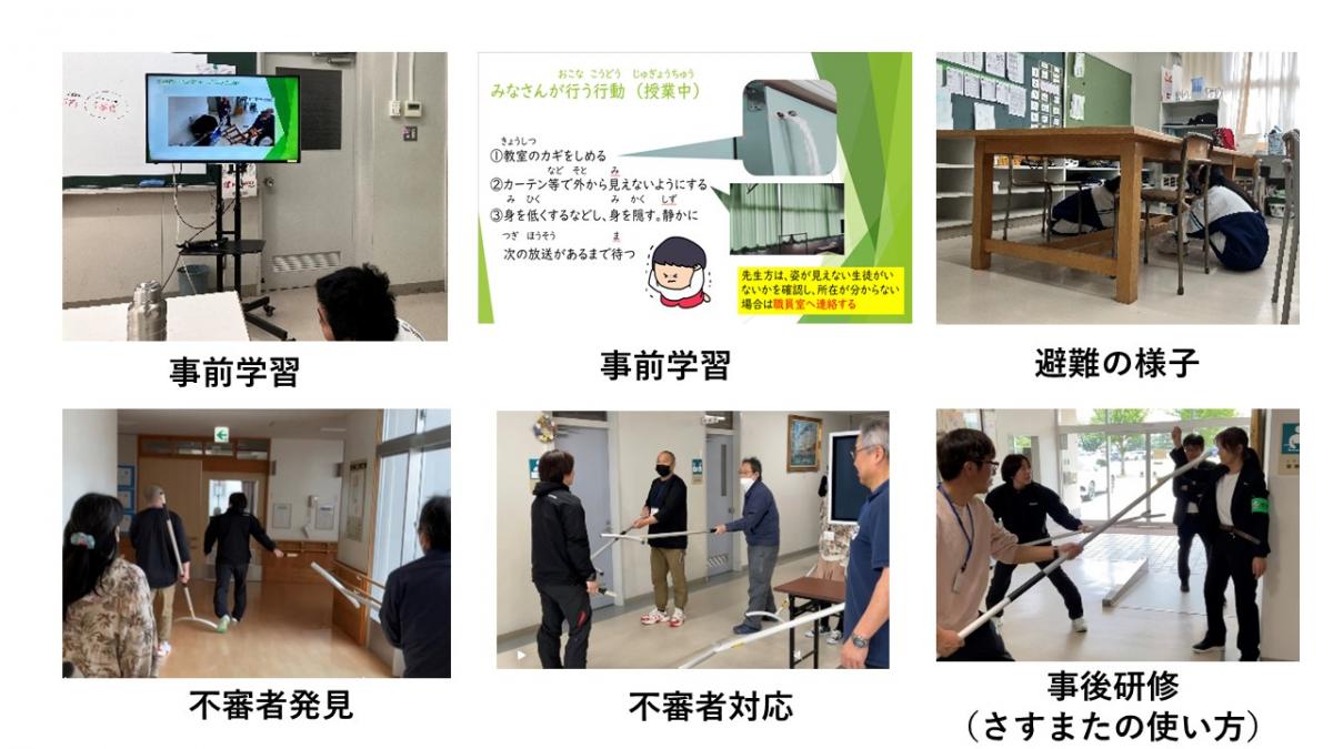 また、白山警察署職員が不審者に扮して、実際に校内に侵入し、教職員はさすまた等を用いた不審者対応を行いました。