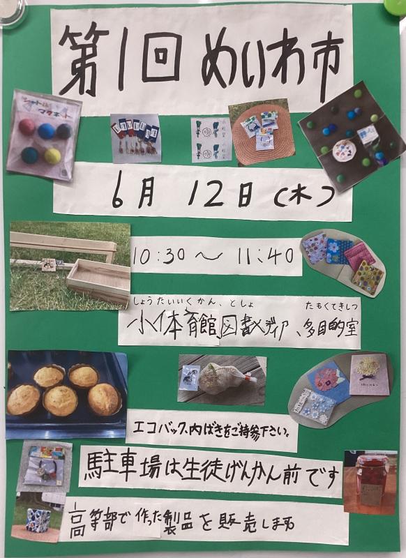 さて、本校では高等部の作業学習成果発表として、6月12日木曜日に『第1回めいわ市』を開催いたしますので、ぜひお越しください。詳細につきましては下記のポスターをご確認ください。