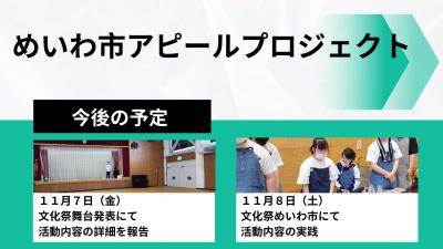 知的高等部3年生は「総合的な探究の時間」に地域と連携する学校を目指して「めいわ市アピールプロジェクト」を進めています。文化祭の舞台発表と作業製品販売にむけて4つの部門にわかれていろいろなアイディアを出し合っています。
