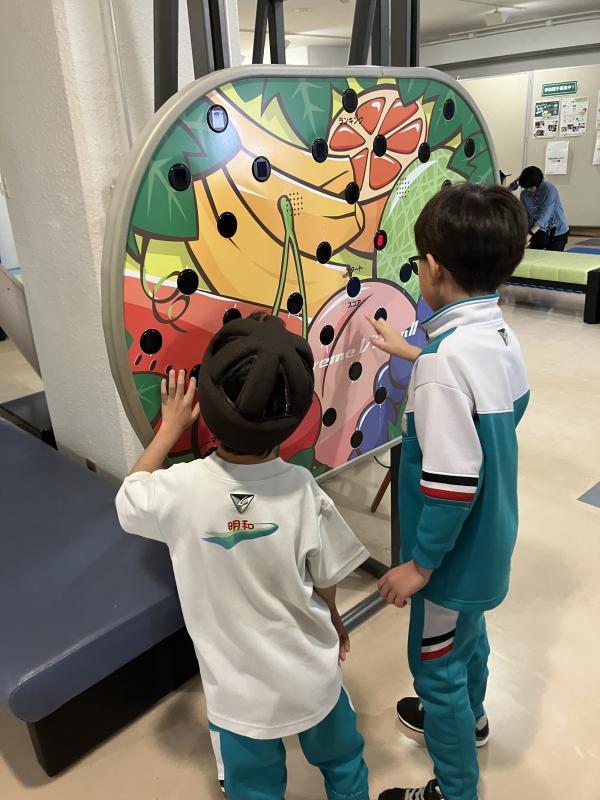 「鏡のマジック」では、自分たちの顔がたくさん映り、不思議そうに鏡を触ったり、覗いたりしていました。