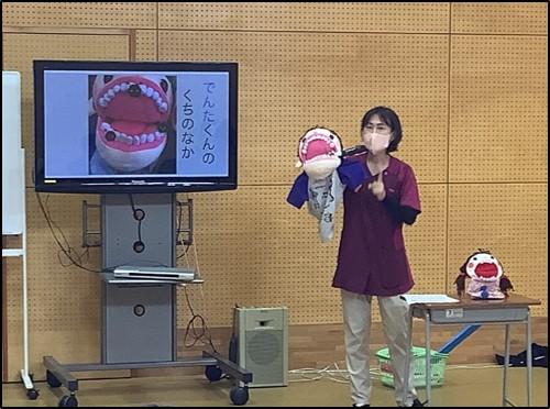 パペットを使って、「はみがきの大切さ」を話していただきました。
