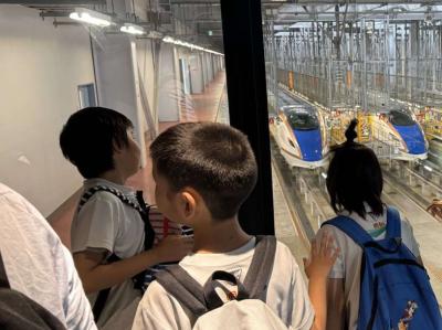 新幹線がすごく早いスピードで通ると、みんな大興奮でした。