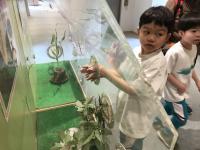 たくさんの昆虫の標本にびっくり!!! 知っている昆虫を見つけたり、昆虫に触ったりして喜んでいました。