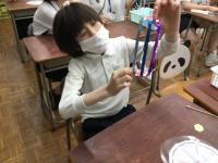 クラフト活動では、「くるくるシャボン玉」を作りました。