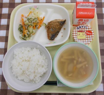 白ごはん、さばのごまみそ焼き、ひじきの炒り煮、豚汁、牛乳
