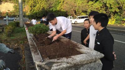 生徒達は、来年の春、新入生を気持ちよく迎えられるよう、気持ちを込めて植えていました。