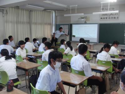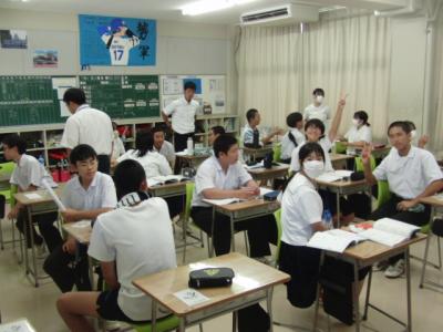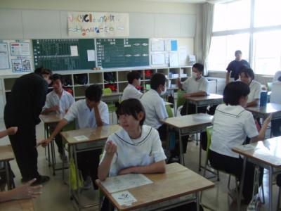 本日の「みどりタイム」は、「アド・ジャンケン」です。ふたりが出した数の和で質問が決まり、お互いに自分を紹介していきます。前回と同様、ジャンケンが繰り返されるたびに、教室は笑顔と歓声にあふれていきました。