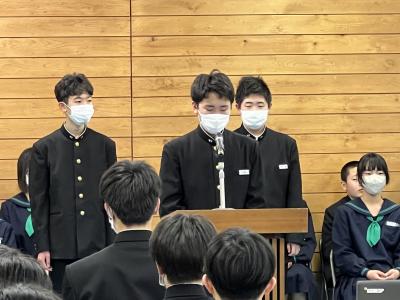 それぞれに責任感を持って会に臨む姿は凛々しく,さすが3年生だな,と思うと同時に,まだまだ発表者として伝える力を磨く必要があると感じました。これからまた頑張っていきましょう。
