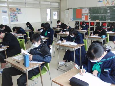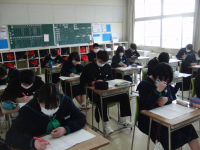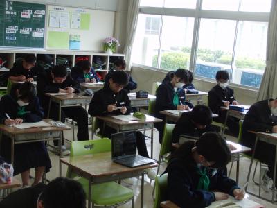 4月16日(水)・17日(木)の2日間、3年生を対象に全国学力学習状況調査と石川県基礎学力調査がが行われています。1・2年生も時期を合わせて進級テストをしています。普段は賑やかで元気な緑中生も、落ち着いた雰囲気の中、集中して問題に向き合っていました。