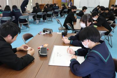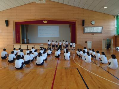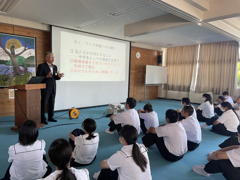 お話がありました。生徒は、明日からの体験学習に向けて体験への気持ちを向けていました。