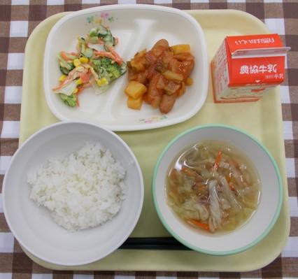 もとにした献立です。今日は都合により肉だんごはウインナーに