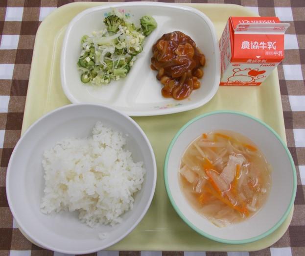 ハンバーグトマトソースとチーズサラダ 投稿日時 : 2024/06/20 緑丘中 【令和6年6月20日(木)】 白ごはん、ハンバーグトマトソース、チーズサラダ、 コンソメジュリアン、牛乳 今日のおかずはハンバーグに玉ねぎやきのこを入れて作った トマトソースをかけた、ハンバーグトマトソースでした。 トマトの酸味だけでなく、デミグラスソースの濃厚な味わいで、 とろりとしたソースがとてもおいしかったです。 チーズサラダもチーズの塩気とブロッコリーがよく合って おいしくいただきました。 今日は牛乳にチーズでカルシウムをたっぷり摂取できました。 Tweet {{options.likeCount}} {{options.likeCount}} 0 コメント