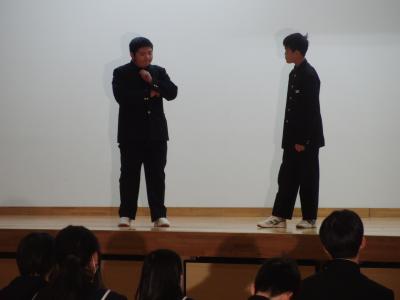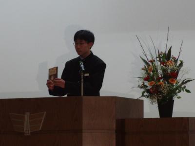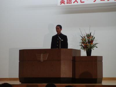 本日午後、緑丘中体育館で標記のスピーチコンテストがありました。市内中学校からの選抜生徒が英語スピーチの正確さや発音、流暢さなどを競い合い、代表を除く緑丘中生徒も聴く側として参加しました。コンテストの前には、珠洲市のALT(英語助手の先生)2人が、会場全体を巻き込んだウォーミングアップもありました。