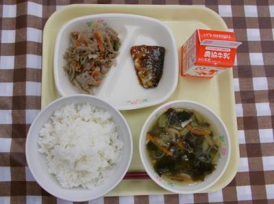 ごはん、さばの生姜煮、きんぴらごぼう、みそ汁、牛乳