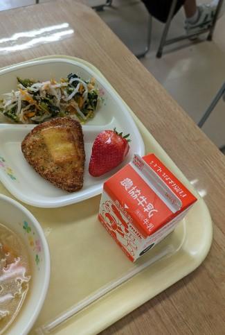 今日の給食には、献立にはなかったのですが、珠洲市にいちごの提供があり