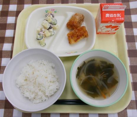 豆腐とわかめのスープ、牛乳