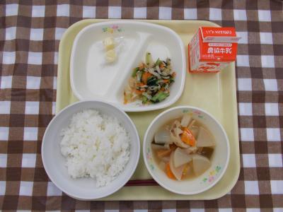ごはん、いそか和え、おでん風煮、チーズ、牛乳
