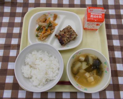 ごはん、和風ミートローフ、切干大根の煮つけ、みそ汁、牛乳