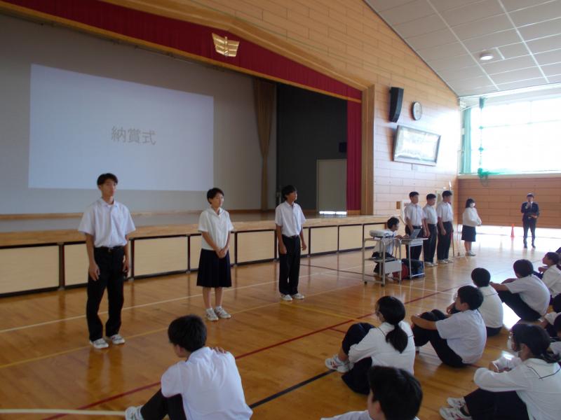 10月4日(水)6限に生徒会任命式・納賞式・生徒集会が行われました。
