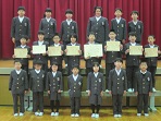 新聞切り抜きコンクール入賞を記念して全員で記念写真を撮りました。