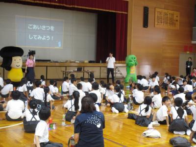 今回の集会では、図書・給食委員会による「たべられたやまんば」の紙芝居がありました。「さんまいのおふだ」のお話でした。