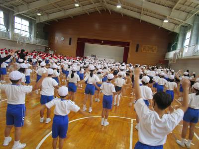 体育館とピロティ―に輪島っ子の元気な声が響いていました♪
