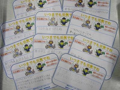 「交通事故にあわないで、いつまでもいつまで、元気でいてください。」
