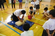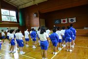子ども達は、教室では机の下にもぐる、廊下では窓から離れる、体育館では中央でしゃがんで頭を隠す等、速やかに避難行動をとり、静かに体育館に集合することができました。