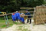 地域の方々、航空高校生と協力して、5アールの稲を約1時間で刈りました。
