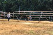 手前に見えるはざの奥の雲梯にもかけてあります。鉄棒も使いました。