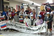 ロシア語でズドラーストヴィチェ Здравств「こんにちは」とあいさつをしたり、ジェラーユ・ウダーチ Желаю удачи!「がんばって!」と大きな声で声援を送ったりしました。