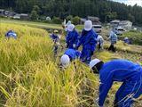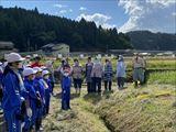 9月16日(木)学校田で全校児童が稲刈り体験学習を行いました。