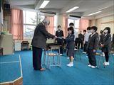 2・3年生は、1年生にメダルと折り紙のプレゼントをしました。