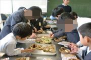 縦割り班に分かれて、世界8か国1家族の1週間分の食料の写真を見て、気づいたことを書きだしました。