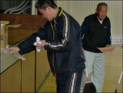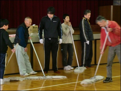 卒業式に向けて教室や廊下、そして体育館のワックスがけを行いました。特に体育館には地域の方4名も参加して頂き、水拭きやワックスがけを手伝って頂きました。おかげさまでとても綺麗になりました。有り難うございましした。