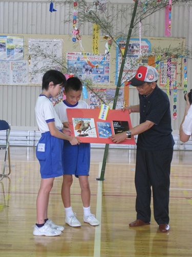 七夕の会に併せて,「いしかわトキ能里の会」の岡本さんより,トキに関する図書を寄贈していただく,寄贈式が行われました。