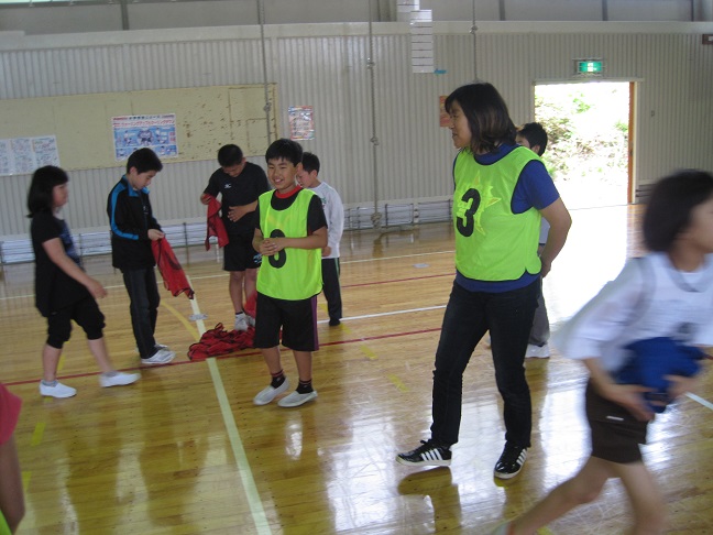 除草作業の後56年生は親子行事としてドッチボールをしました。保護者の方は「何年ぶりやろ」とか「思っていたより楽しい」という言葉が聞かれました。当然、子どもたちは相手が誰であろうが、遠慮なく力一杯ボールを投げ自慢げでした。最後には、「またやりたい」「来年は総当たり戦もいいね」などのつぶやきが聞かれるなど親子ドッチボールは好評でした。