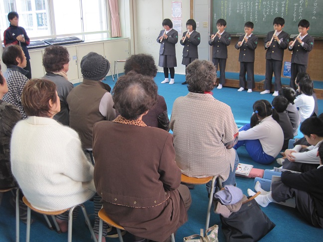 今日は上三井地区の方17名の方を招いて、1~4年生と交流し給食を一緒に食べ、ともに楽しい一時を過ごすことができました。